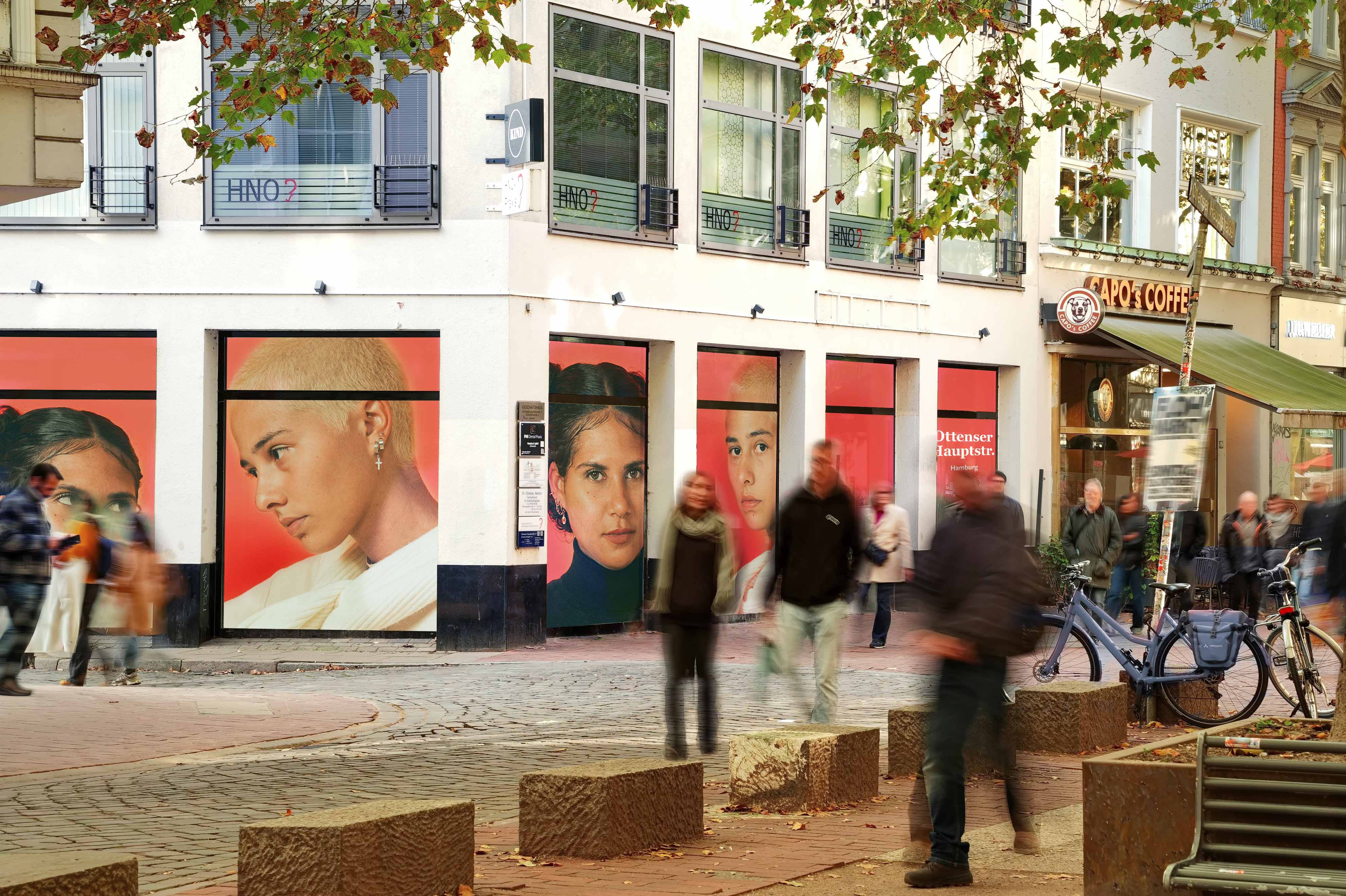 A unique Window Ad in vibrant Hamburg's Altona district: This is where urban living meets cultural serenity. Ottenser Hauptstraße is a charming promenade that leads from Altona train station into the heart of the district. A trend-conscious and affluent target audience strolls here every day, strolling among historic buildings, small boutiques, and cafés. Prominently placed, this Window Ad promises a memorable presence.