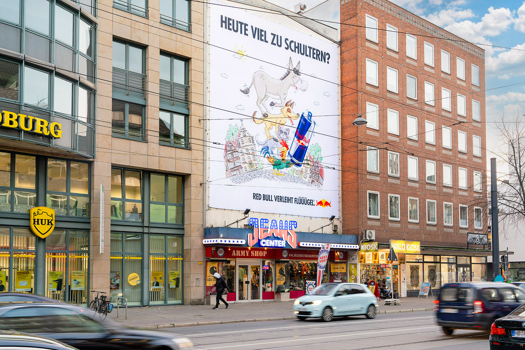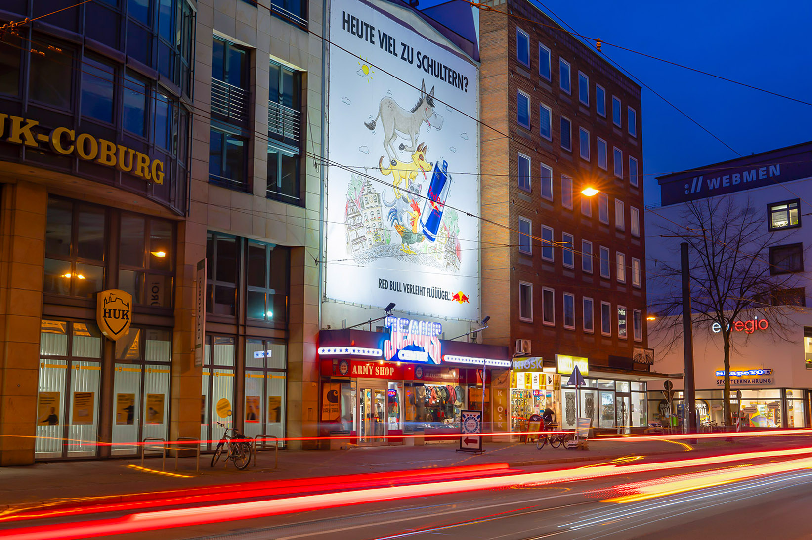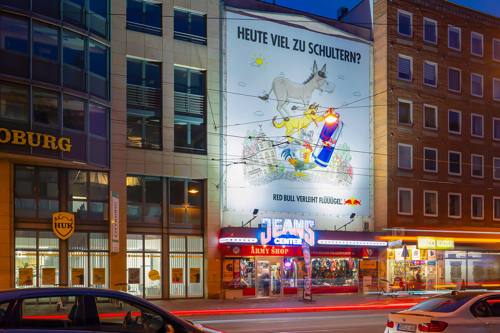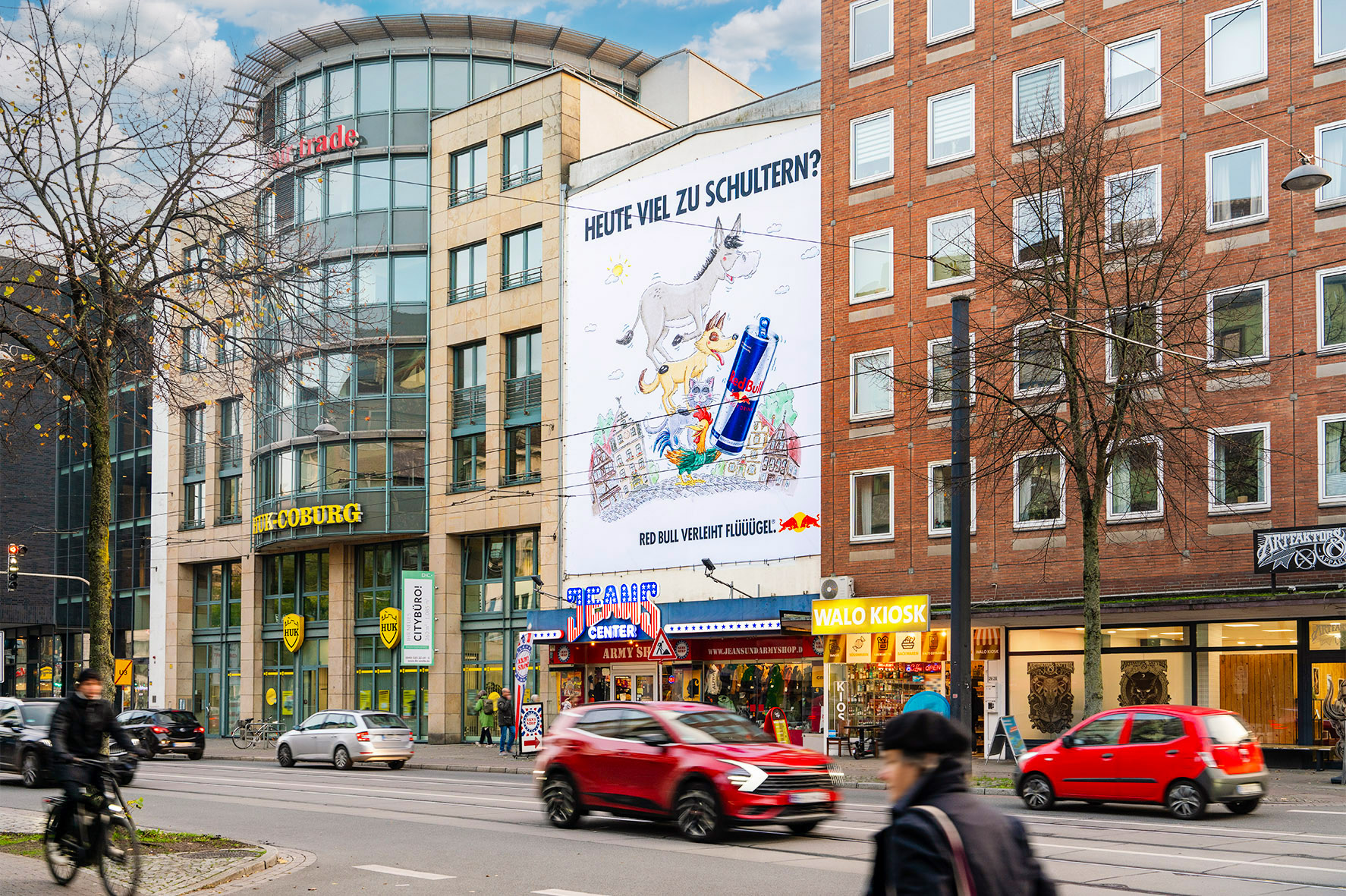 Parallel location in Bremen's city centre, visible from a distance of 100 m. The 2-lane Am Brill is a commercial road with lots of shops and runs from the east to the inner city. The strategic position in the centre of Bremen gives the site very high traffic numbers. Lots of commuters pass it daily on their way to the city and high pedestrian frequency is guaranteed by many nearby shops. Public transport facilities nearby generate additional viewers. The location is very near the "Schlachte", the most popular quarter in the city attracting many young visitors and trendsetters at night.