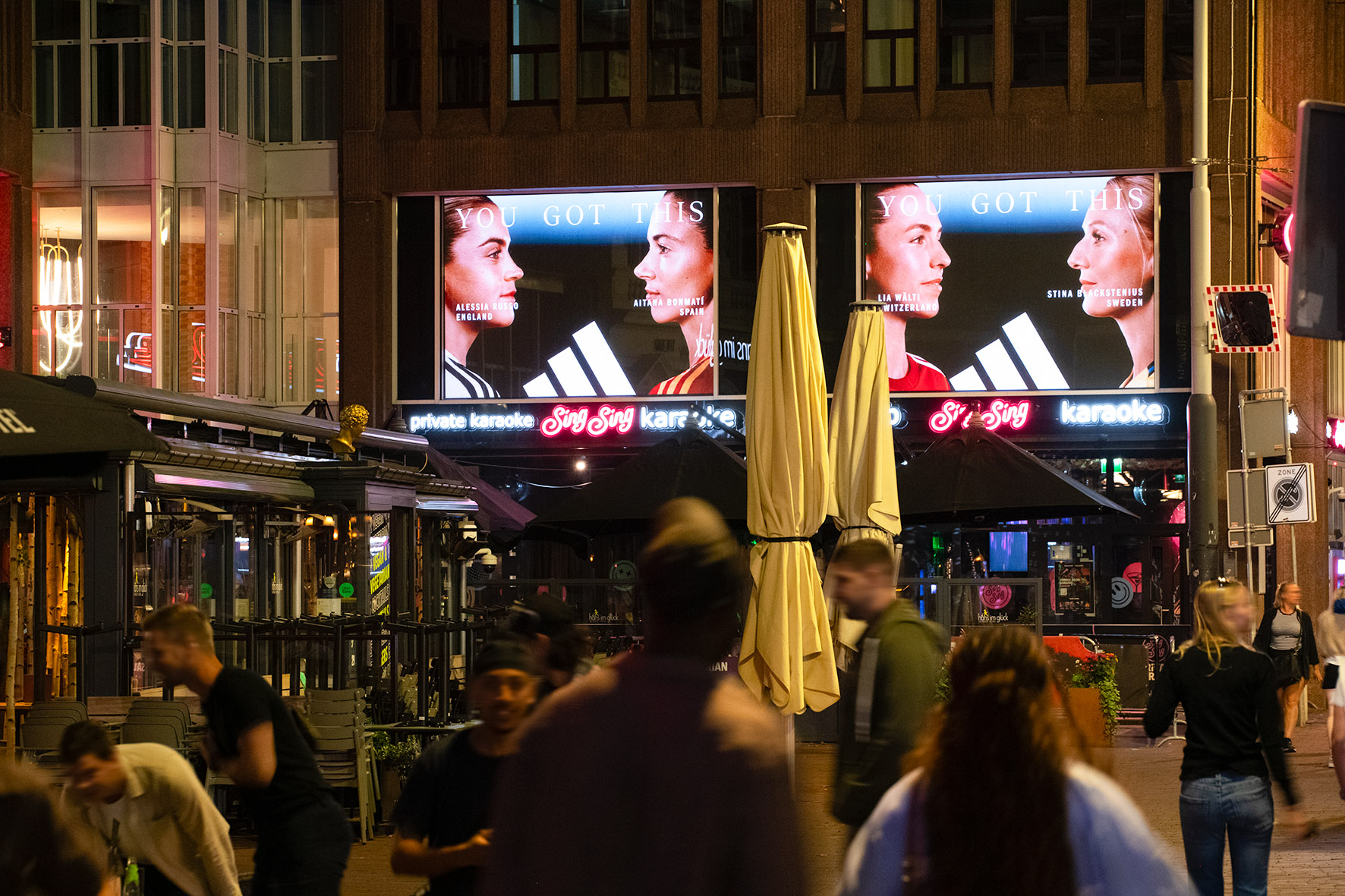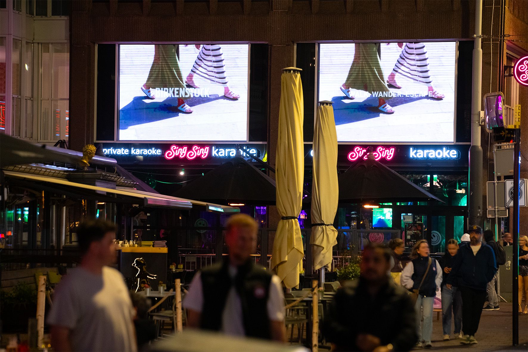 Double Digital® is the unique dual screen located in the heart of Amsterdam. Use the screens separately, run the same advert on both screens, or merge them and use them as one. This digital duo is situated on the busy Rembrandtplein, between the shopping streets Kalverstraat and Utrechtsestraat. Rembrandtplein is not only bustling during the day, but also has a vibrant nightlife and hosts various events throughout the year. Double Digital® combines a premium location, high visibility and state-of-the-art technologies, ensuring your message makes maximum impact.