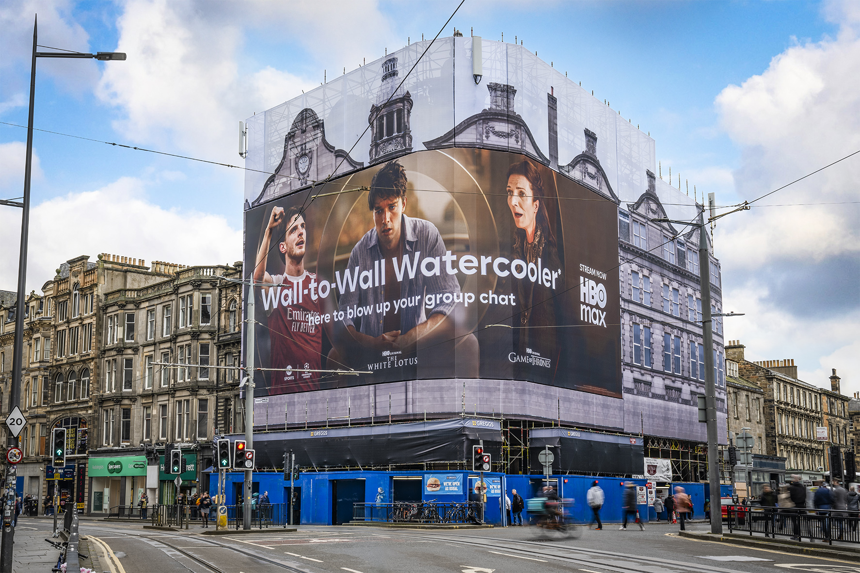 Our 401m² Edinburgh Central Giant Poster overlooks the bustling streets of the city’s prestigious West End. This unmissable site sits at a key gateway between Lothian Road which connects the Old Town and New Town and Princes Street, Edinburgh’s main shopping destination and cultural heart of the city. Its strategic location ensures continuous visibility to both pedestrian and vehicular traffic throughout the day.