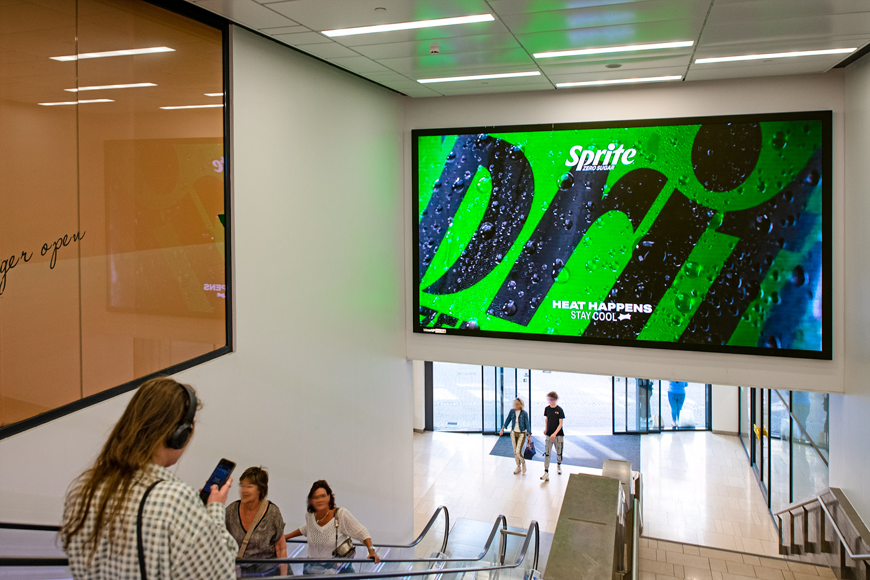 Each year, more than 4 million people pass through this busy entrance to Hoog Catharijne, walking directly towards this 15m² LED screen. This makes it an ideal location for reaching the Utrecht local audience. The passageway is mainly used by city residents who walk straight from the shopping centre to the well-known Steenweg, one of Utrecht’s busiest shopping streets. In addition to regular visitors, the route also attracts many students, day-trippers and tourists heading into the city centre. The screen is located in a narrow passage, meaning campaigns naturally command attention.