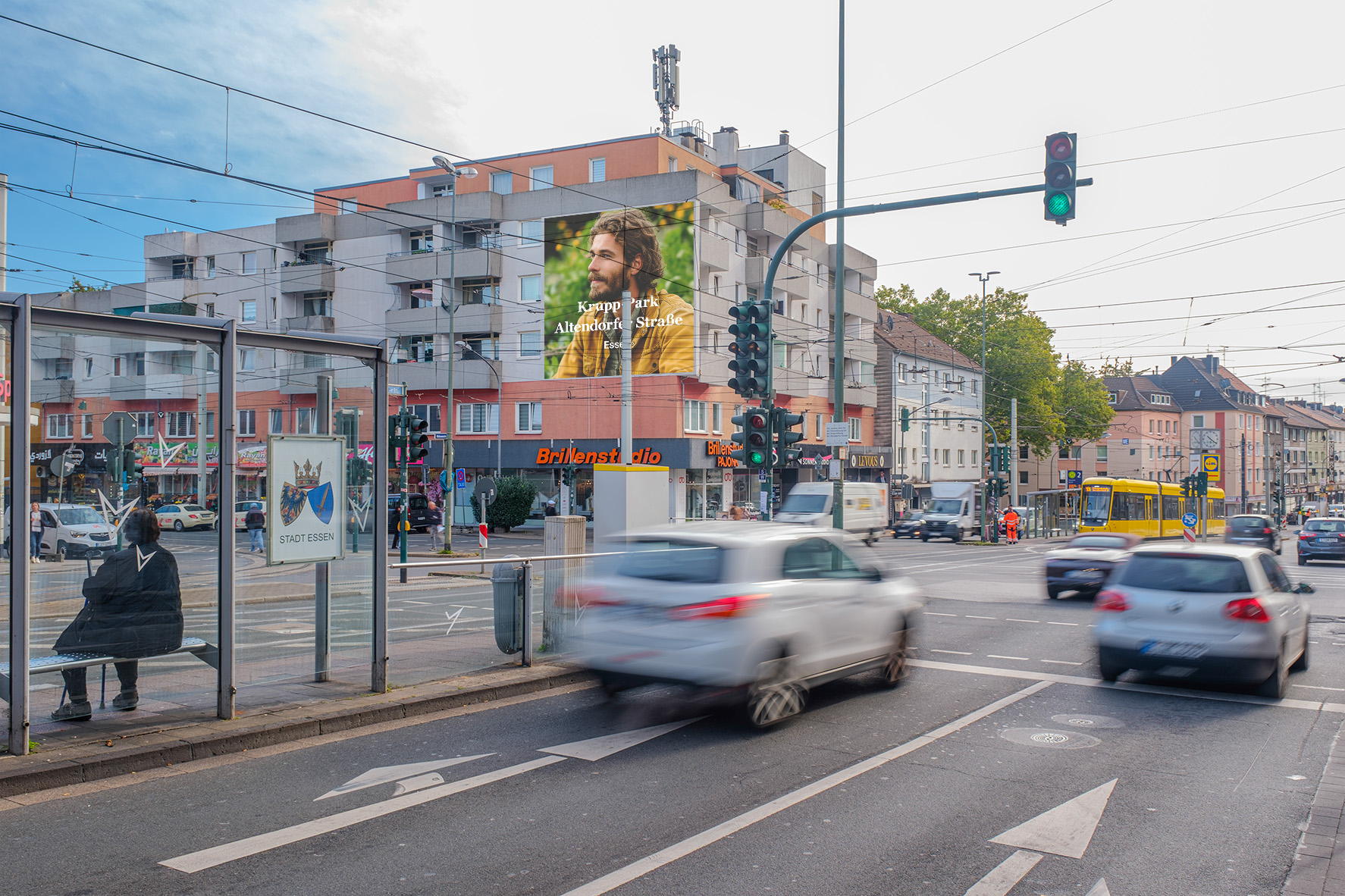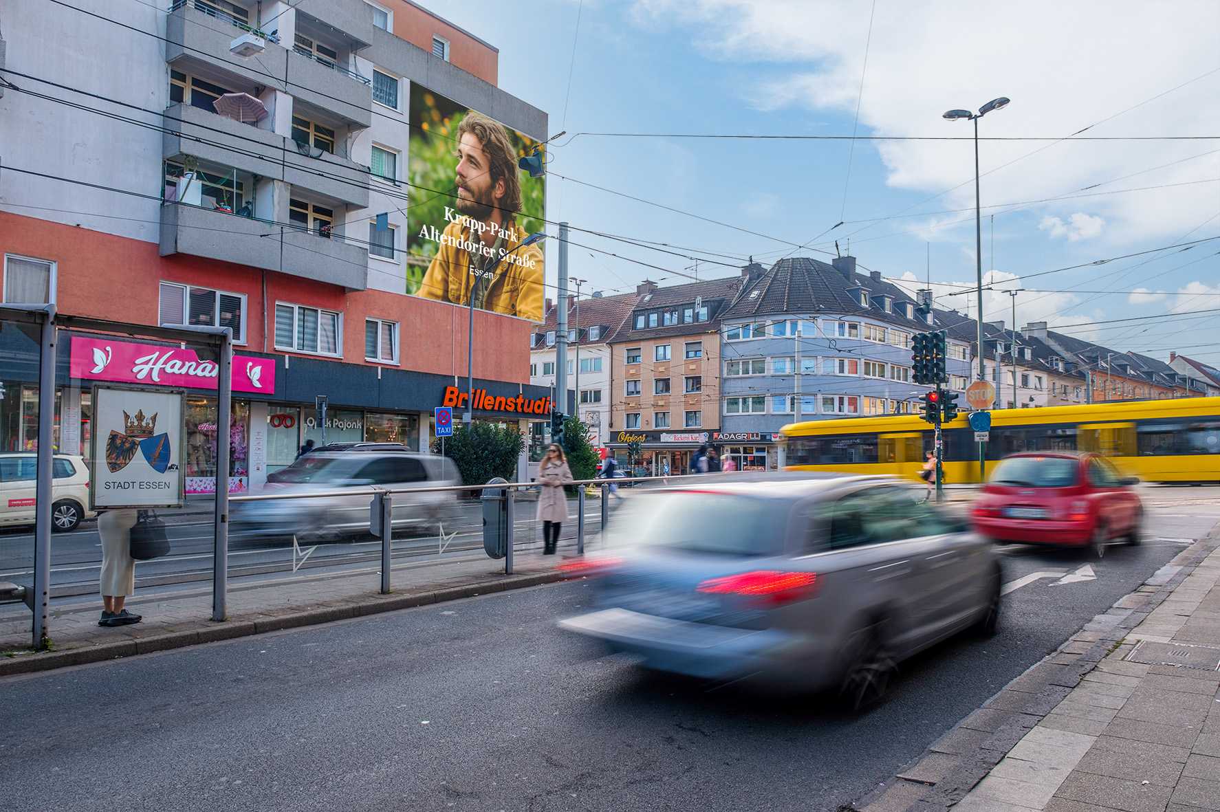 Traffic location in a unique position: Situated directly adjacent to Krupp Park in Essen, this location is impossible to miss. Located at the intersection of Helenenstraße and Altendorfer Straße, it attracts shoppers to numerous shopping opportunities, such as Limbecker Platz, leading towards the city center. Residents can easily access one of the many tram lines and Krupp Park, a popular recreational area for all ages.