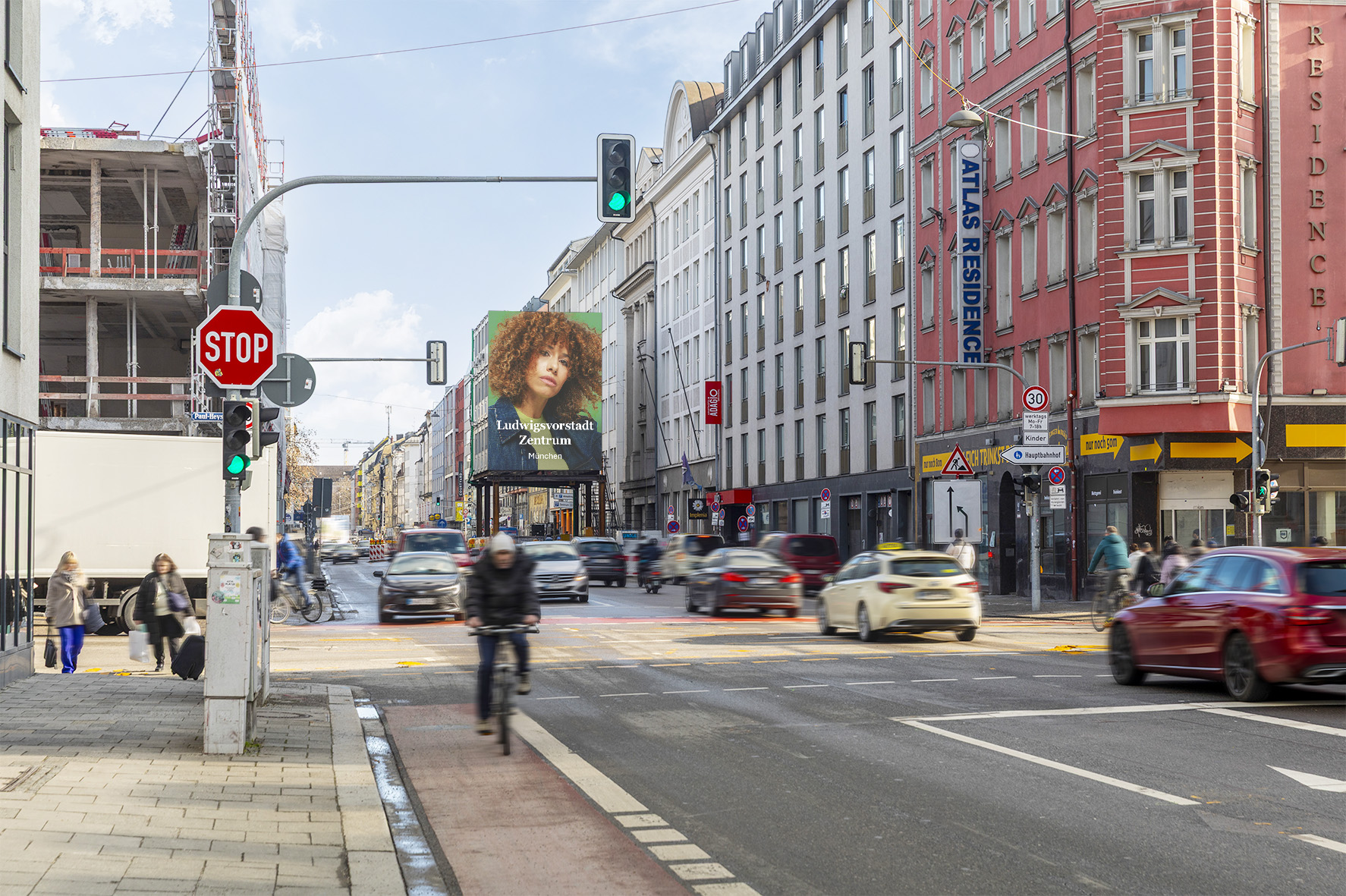 Nowhere does Munich feel as urban as it does here. The Giant Poster is located in the heart of the multifaceted Ludwigsvorstadt district. The area between Westend and the old town is defined by a vibrant mix of retail, hotels, and dining. Its immediate proximity to hotspots such as the central station and Stachus makes this location an unmistakable eye-catcher in the heart of the Bavarian metropolis.