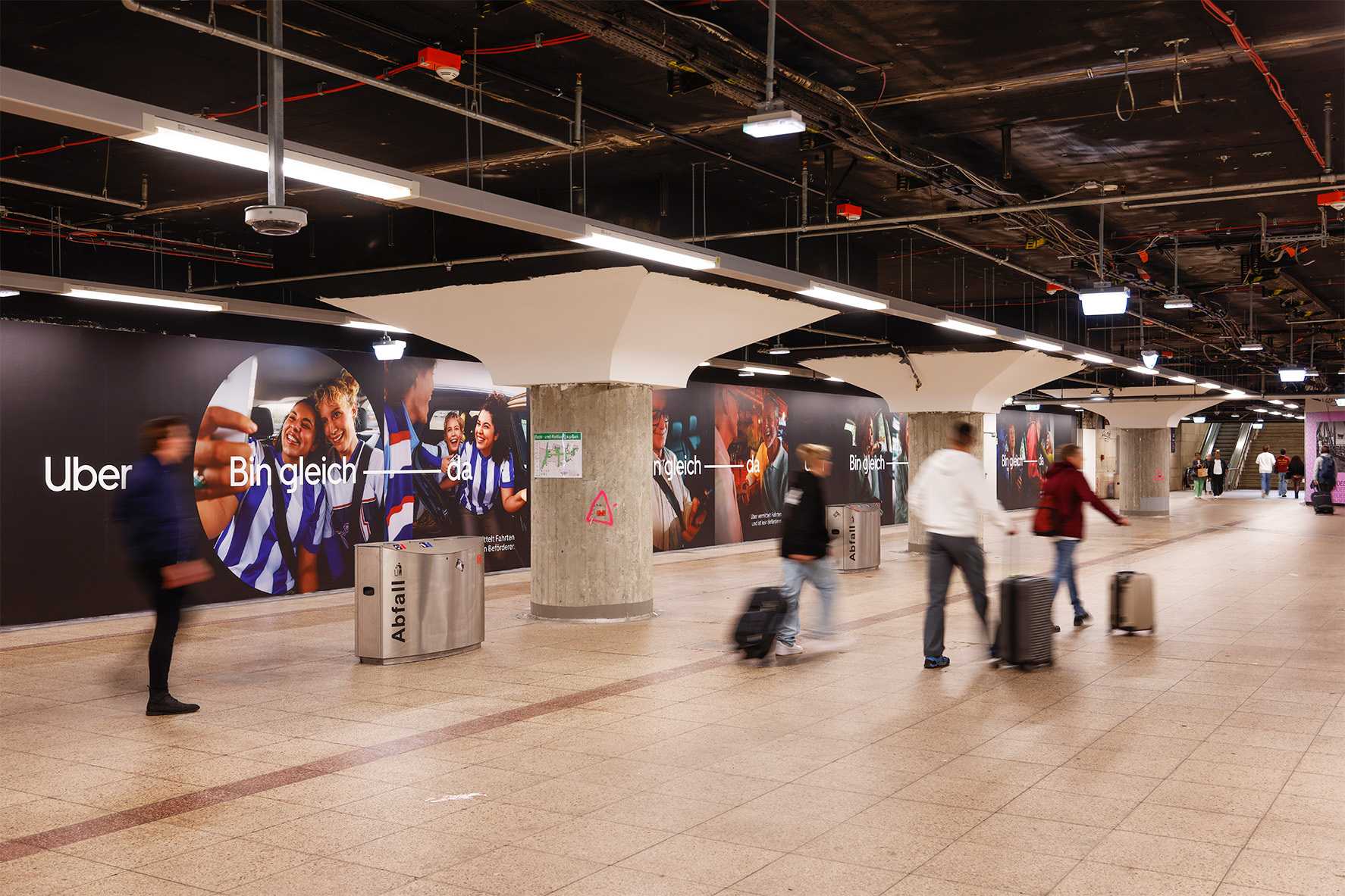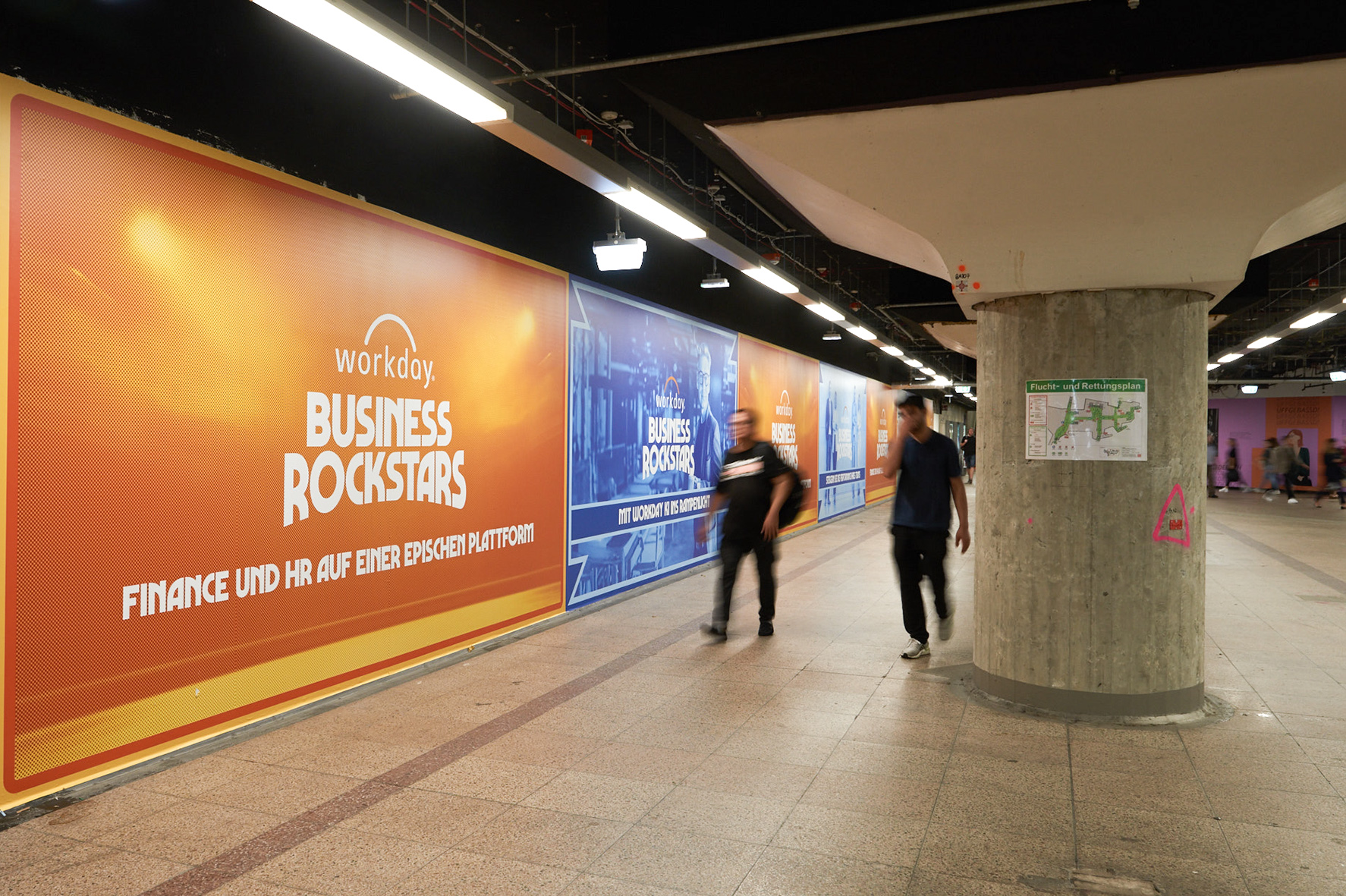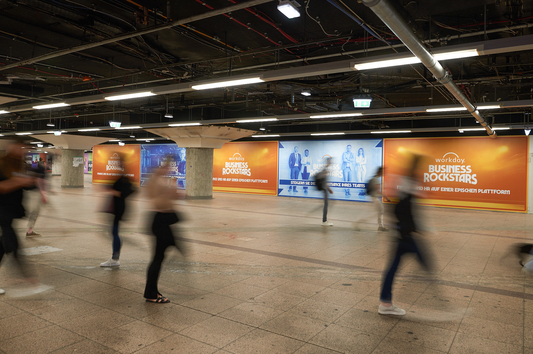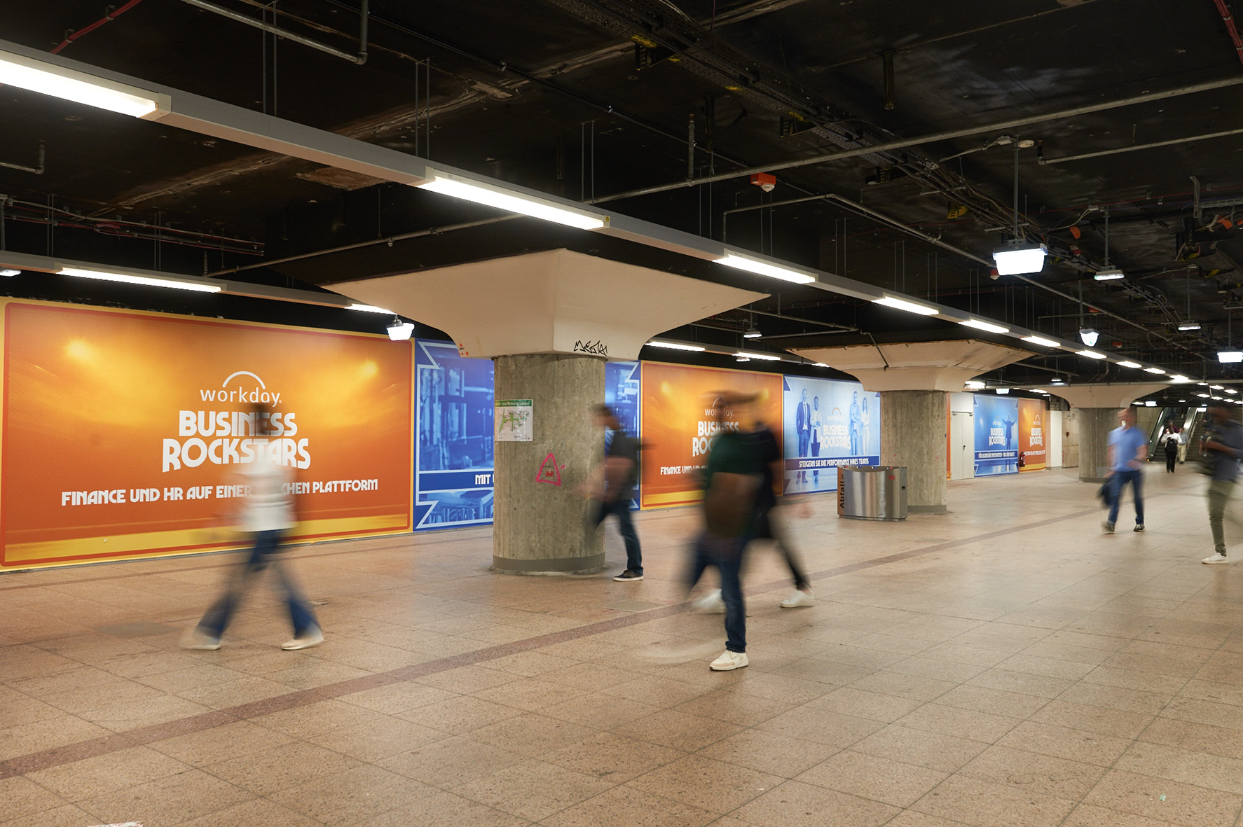 Impressive branding at the heart of Frankfurt! The high impact Media Wall is located on the lower ground floor of Frankfurt central station, where numerous shops and restaurants attract a high-spending target group. The passage serves as a gateway between the train station and the city center as well as a connection between the long-distance train station and the U-/S-Bahn. With up to 460,000 passengers each day, Frankfurt station is the second busiest long-distance central station in Germany.