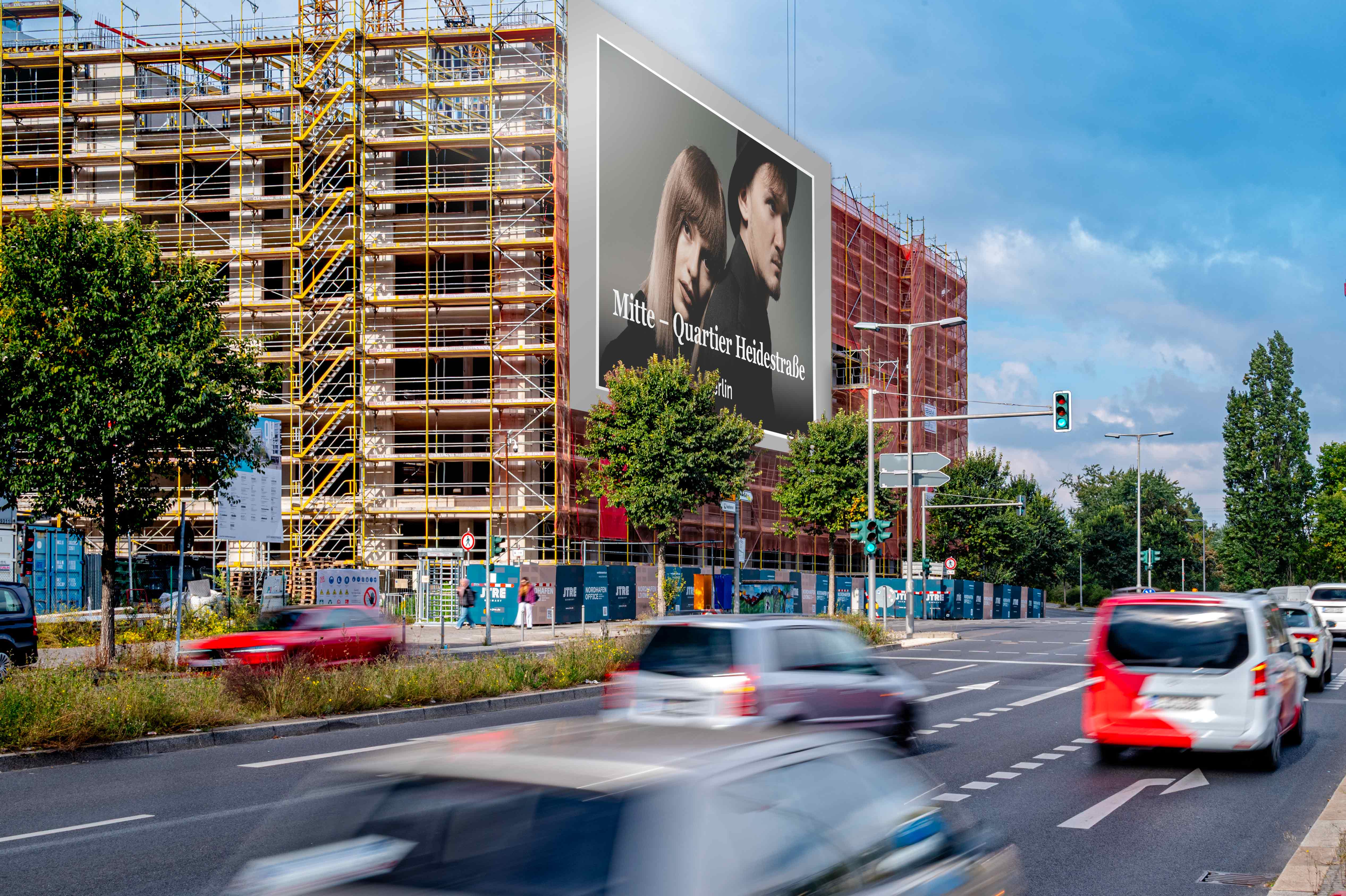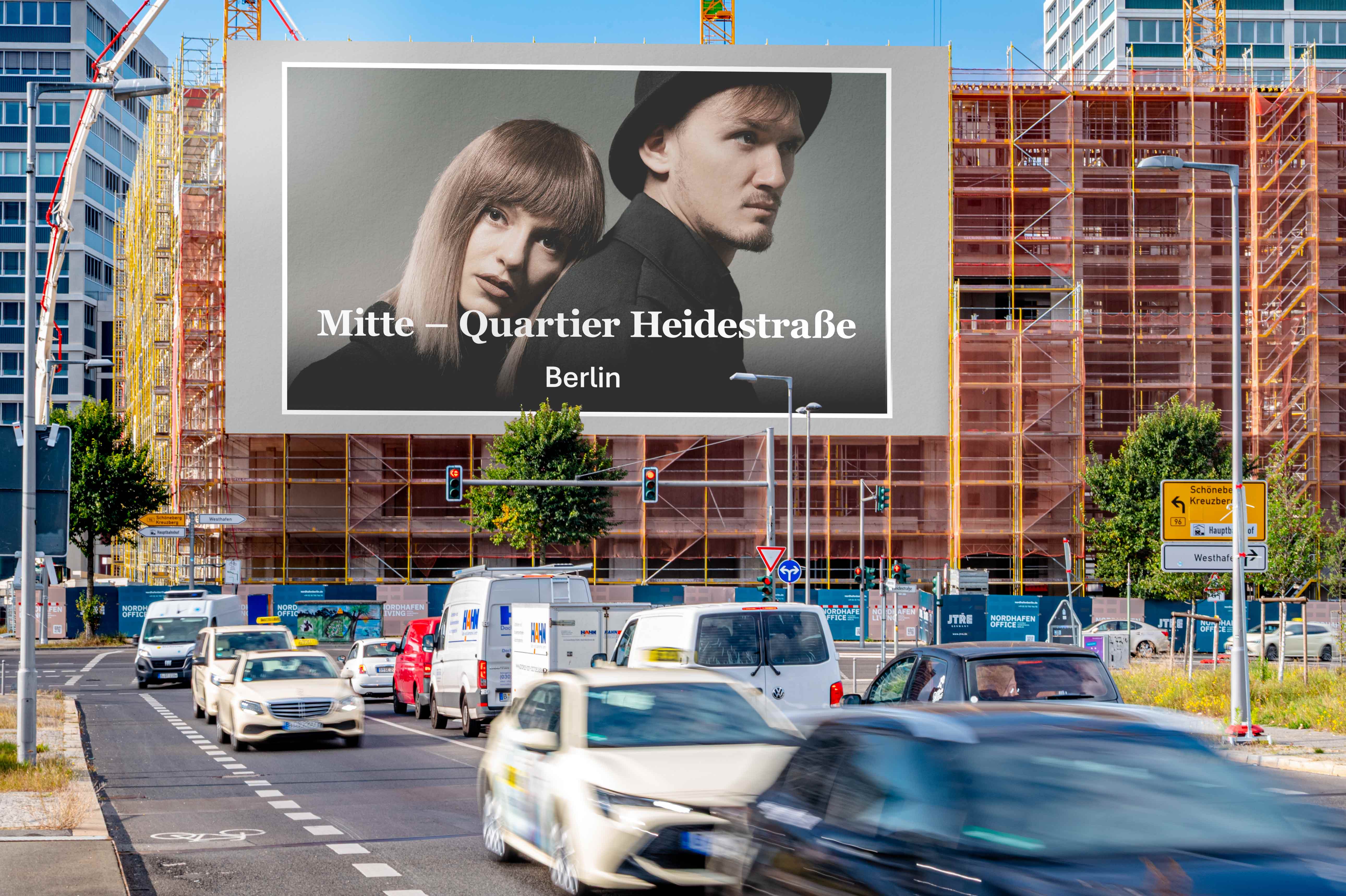 364 m² highlight in the heart of Berlin. Located in the new Europacity district, adjacent to Berlin’s historic center, this Giant Poster is positioned at Quartier Heidestraße. Spanning an area of around 175,000 m², the district is evolving into a vibrant urban environment with apartments, offices, shops, art spaces, cafés, and restaurants. Its location on the heavily frequented Heidestraße ensures maximum visibility among business professionals, commuters, and urban creatives navigating daily between work, home, and leisure.