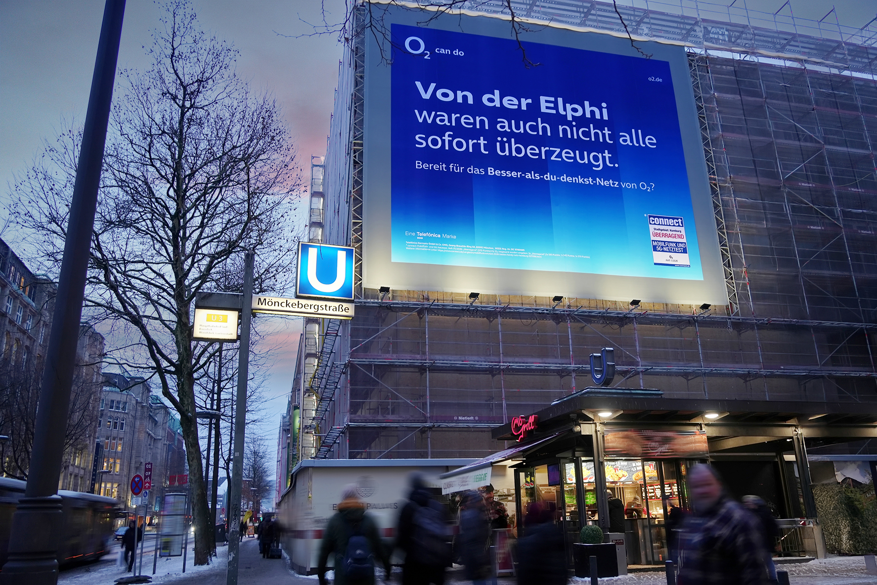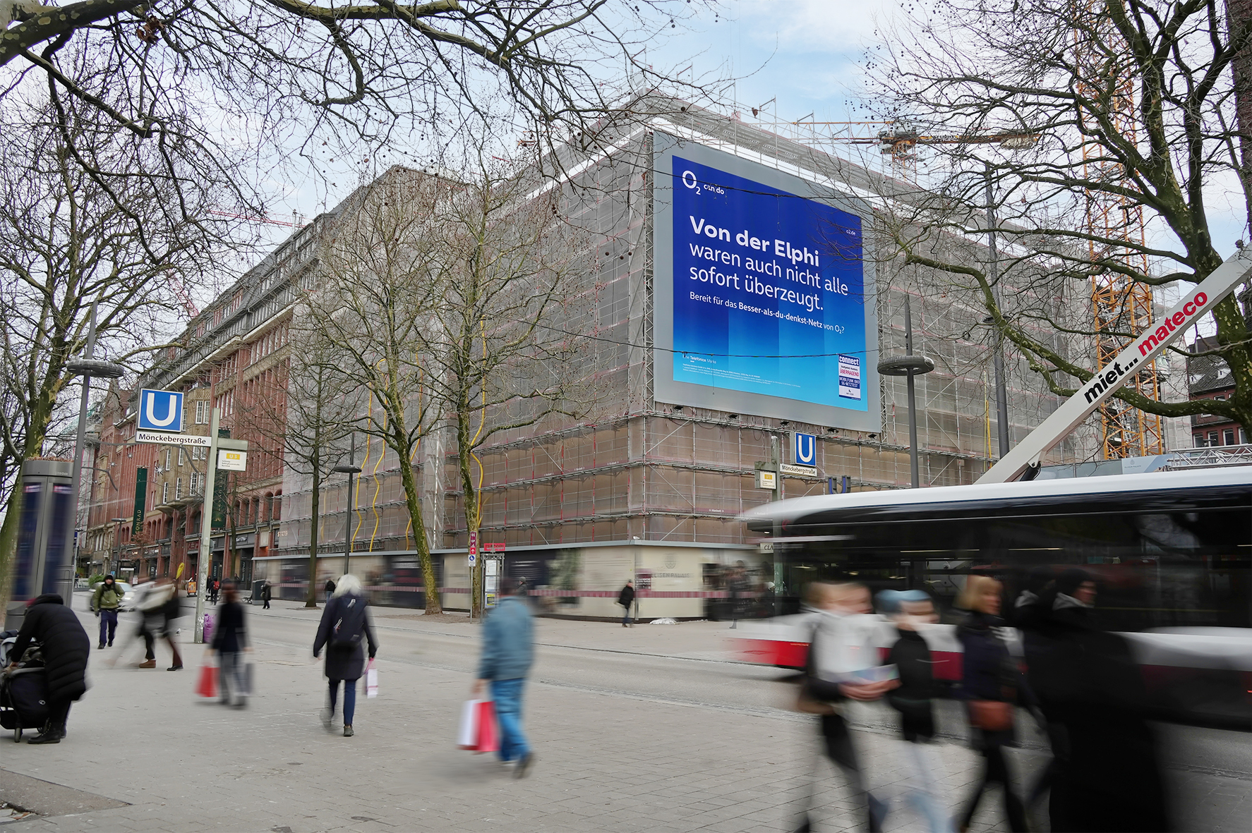 Giant Poster highlight in the centre of Hamburg's promenade and shopping mile Mönckebergstraße - the hotspot for fashion-conscious shopping fans and trendsetters. Running centrally between the main railway station and the town hall, Mönckebergstraße is one of the ten most-visited and highest-turnover shopping streets in Germany: almost 130,000 shoppers and culture-loving passers-by are drawn here every day to the variety of well-known fashion outlets, restaurants, cafés and theatres.