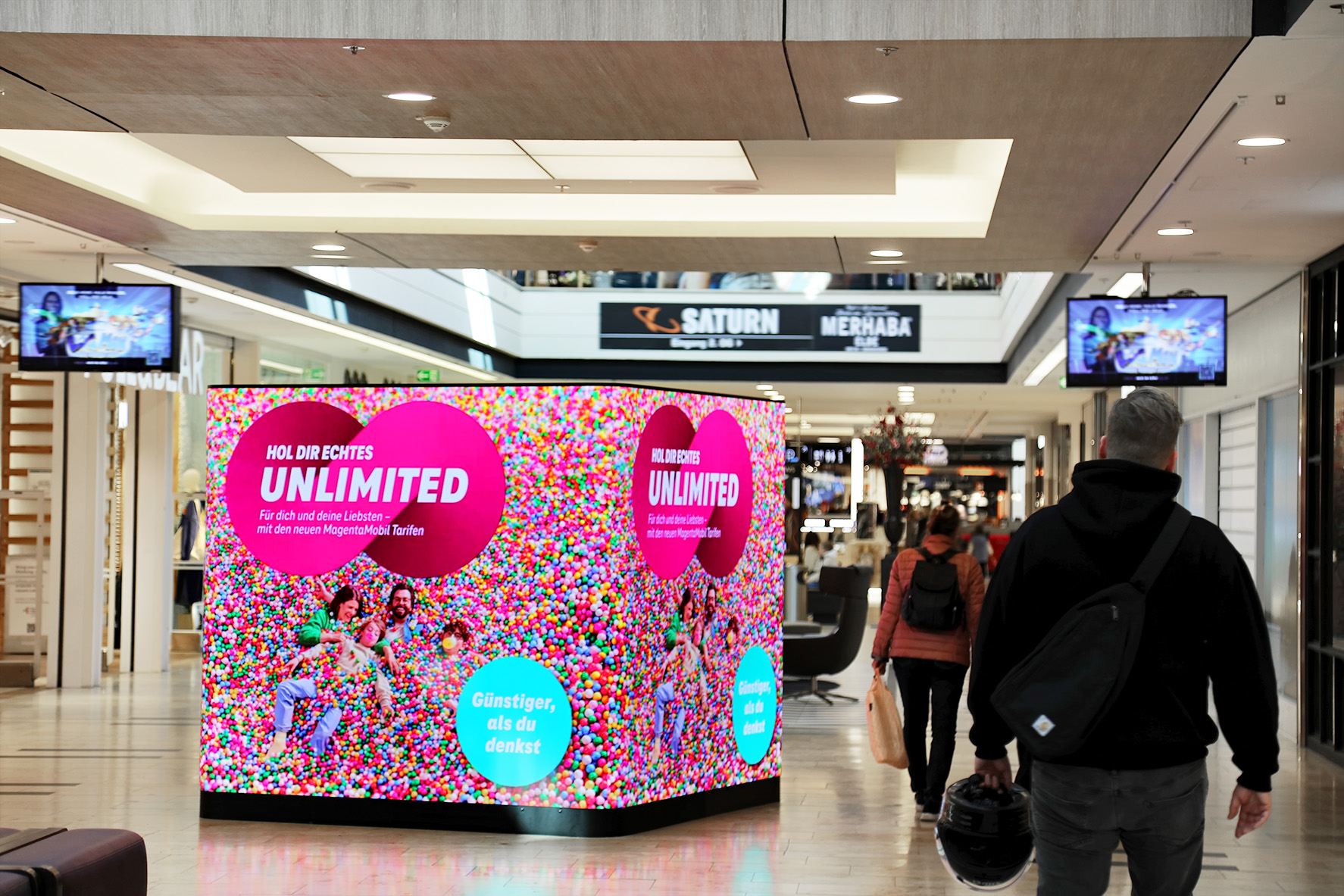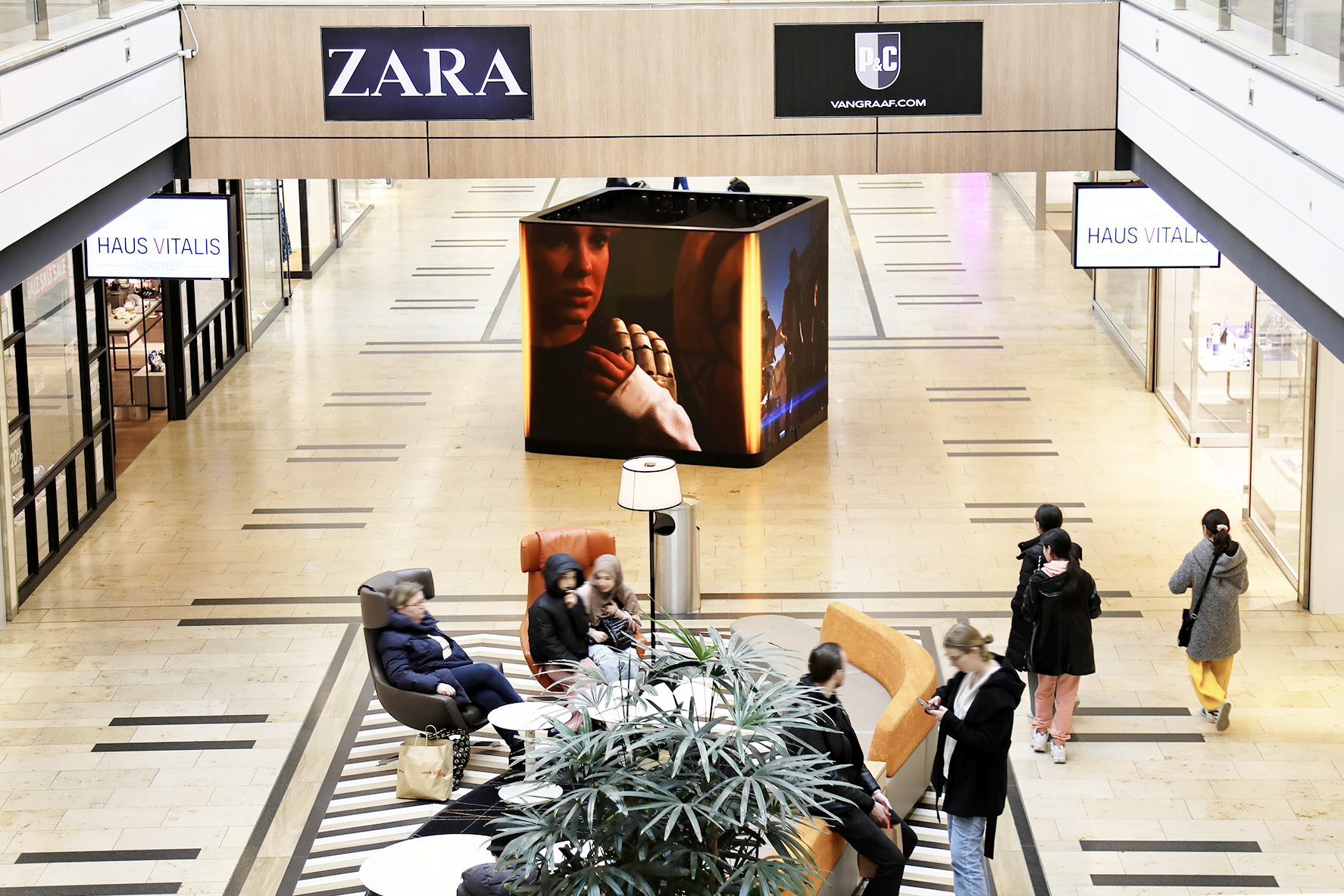 Motion Cube goes outdoor! The 18 m² digital Motion Cube stages 360° content for spectacular brand presentations on four seamlessly playable sides. On top of this, brands can reach a lifestyle-orientated target group in a shopping mood with immersive 3D content at eye level. With over 180 shops, the ELBE Shopping Centre is the top-class hotspot in the west of Hamburg. The sophisticated architecture with spacious atriums and the impressive rotunda creates a unique shopping ambience that attracts visitors from the entire region and makes the ELBE Shopping Centre the perfect stage for a strong brand presence.