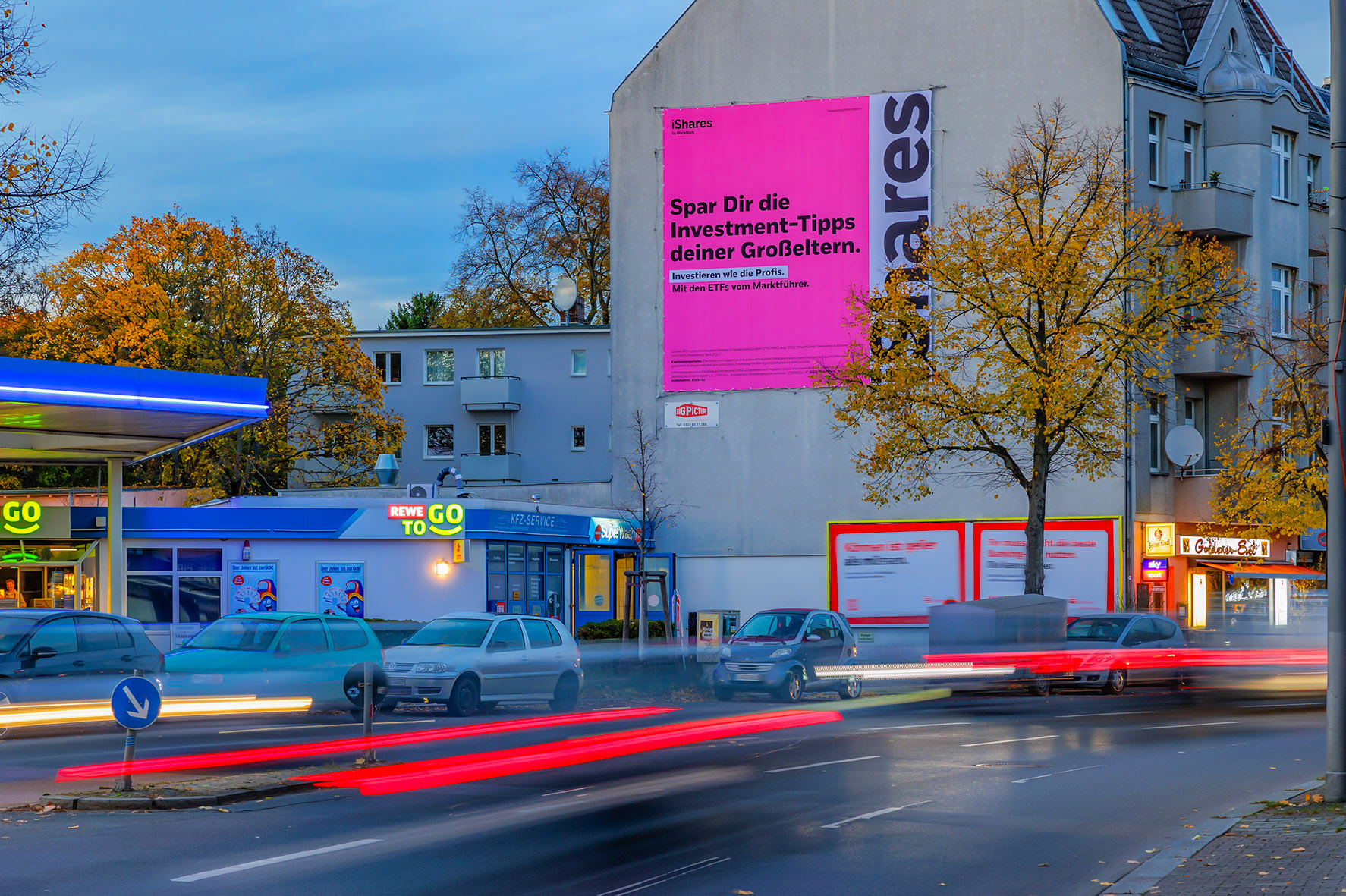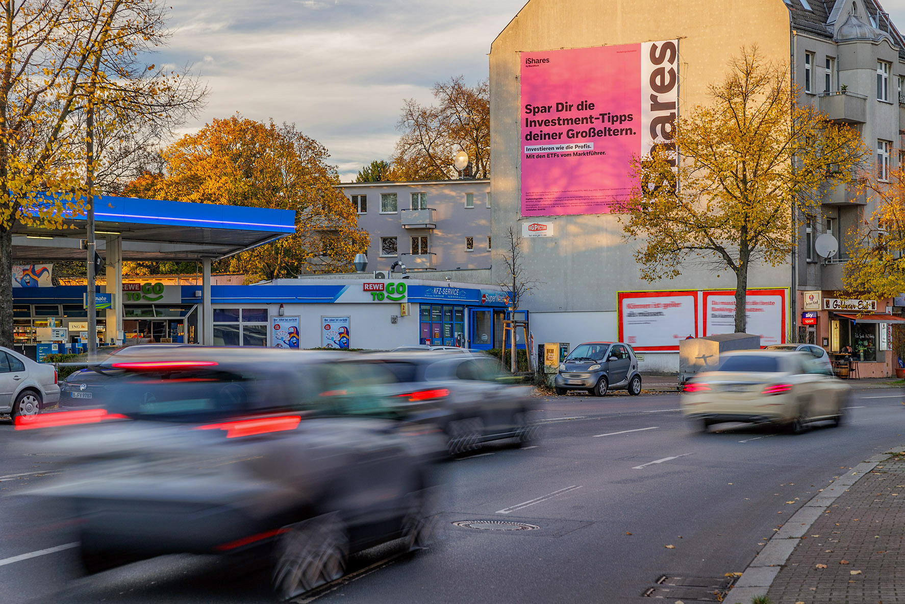 This Giant Poster guarantees top visibility on the highly frequented Britzer Damm, which leads to the trendy districts from Neukölln to Kreuzberg! Neukölln has developed into a trendy district where young people are in party mood. Students and young tourists are looking for what they expect from Berlin: a mix of casualness and new trends.