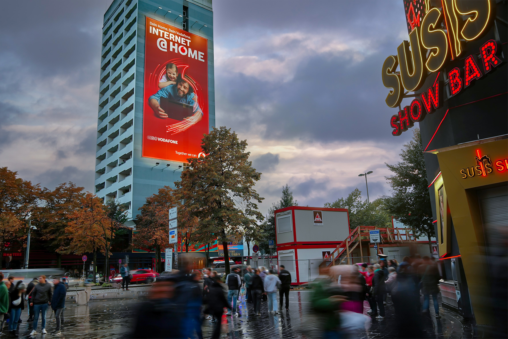 The site is situated directly at the Reeperbahn. The 930 m long Reeperbahn is St. Pauli’s central thoroughfare and Hamburg’s red light district. It runs from Millerntor in a westerly direction to Nobistor (Hamburg-Altona) where it becomes Königstraße. The site generates large amounts of vehicular and pedestrian traffic. An underground station, taxi rank and bus station are all in close proximity. In the immediate vicinity: Hamburg harbour, the fish market, shops, bars, live clubs, discotheques and numerous restaurants.