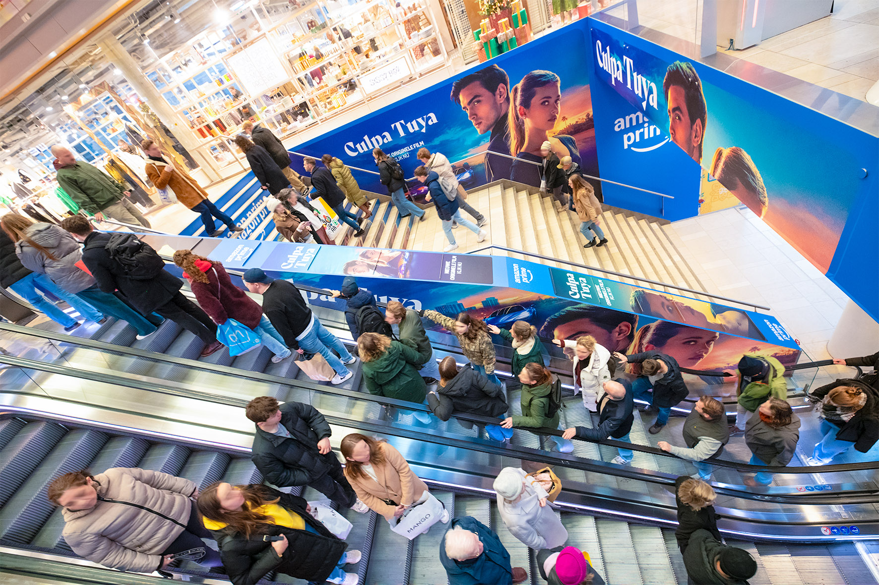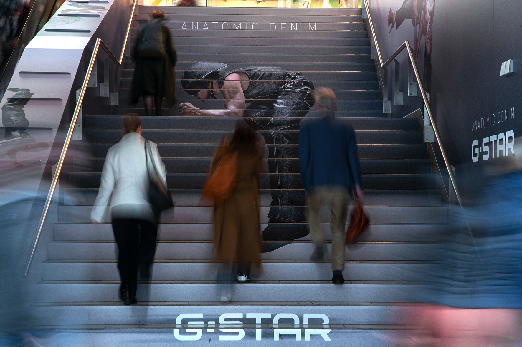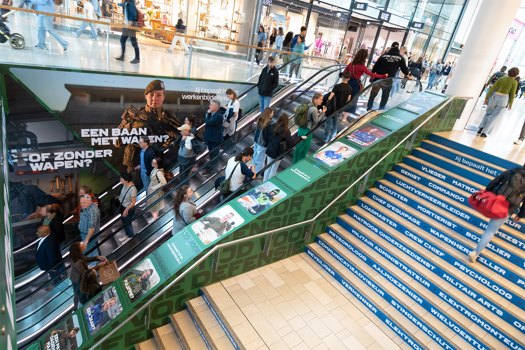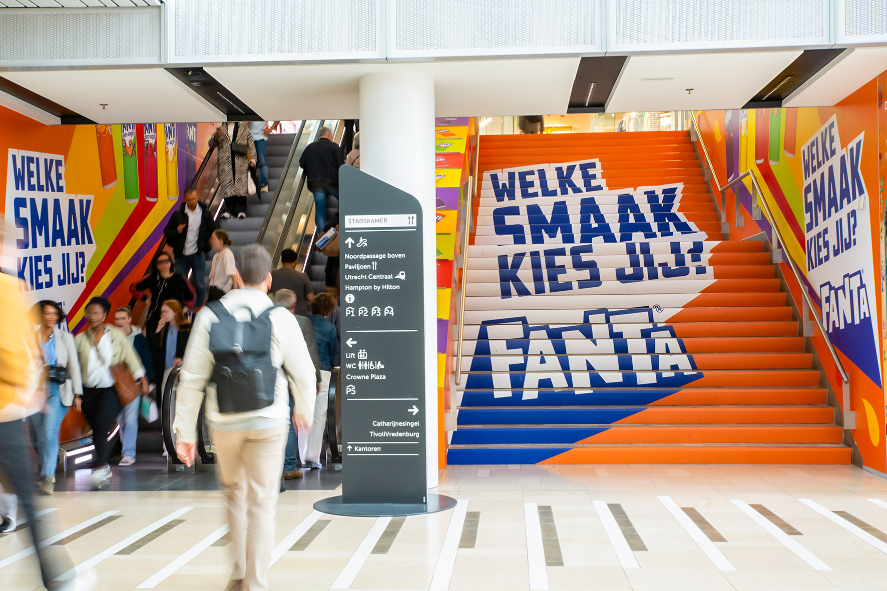 Make a brand statement in shopping mall Hoog Catharijne, the busiest retail hub in the Netherlands, with full wrapping of the Stairs. This location concerns the North side, but can be combined with the South side. The 'Stairs' are a huge eye-catcher that passers-by cannot ignore, especially in combination with stickers on the walls. Upon arrival on the first floor, a matching digital campaign on the screen reinforces The North Mile; the perfect complement to this brand experience.