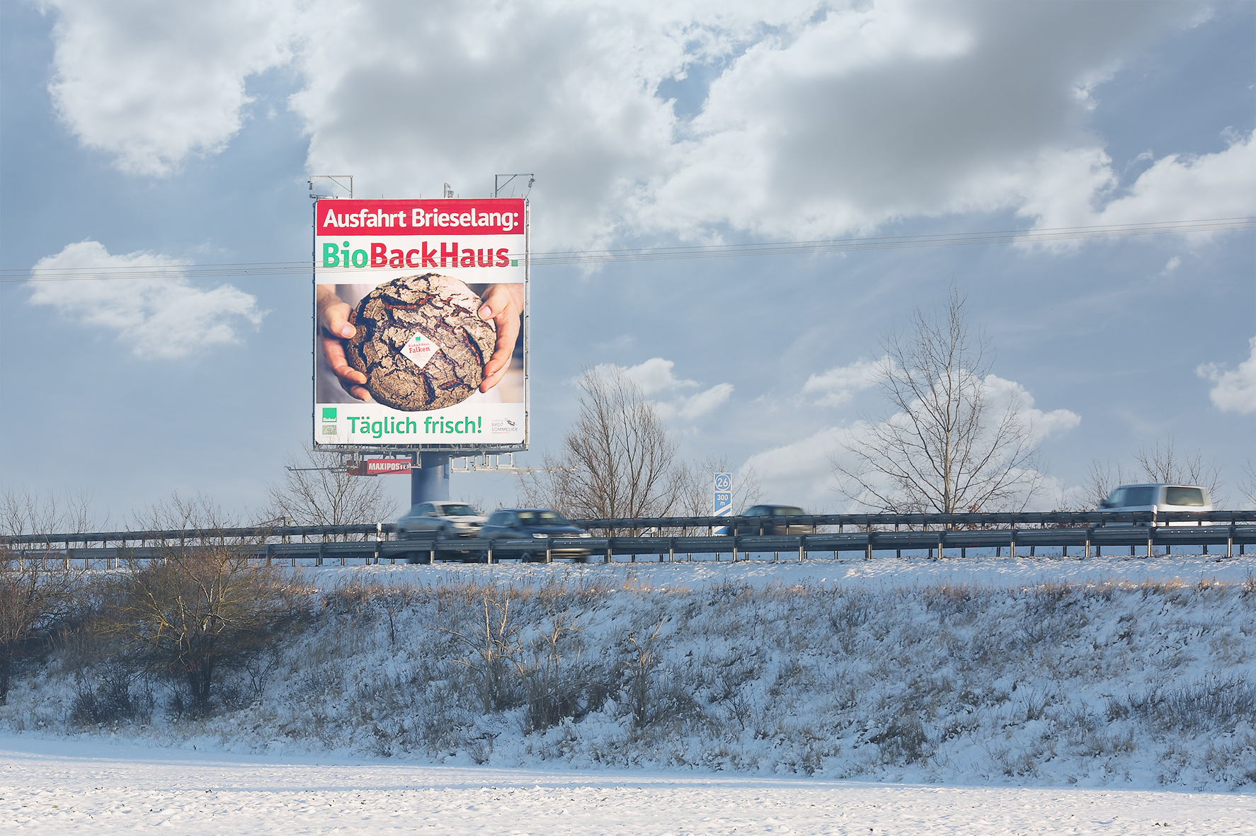 With a height of 40 m, our Traffic Tower on the A10 in the direction of Hamburg is absolutely impossible to miss - the advertising motif catches the eye from a distance of more than 1,000 meters. Located directly on the A10, it meets a lucrative car driver target group in the Berlin area: employed, high earners and highly educated. The A10 forms the Berliner Ring and connects the region with the metropolis. You also have a clear view of the tower from the B5, the east-west route for the Berlin area. Nature reserves, amusement parks, the BahnTechnologie Campus Havelland and one of the largest designer outlets in Germany regularly attract an attractive audience.